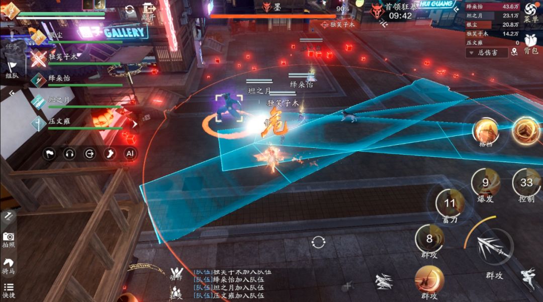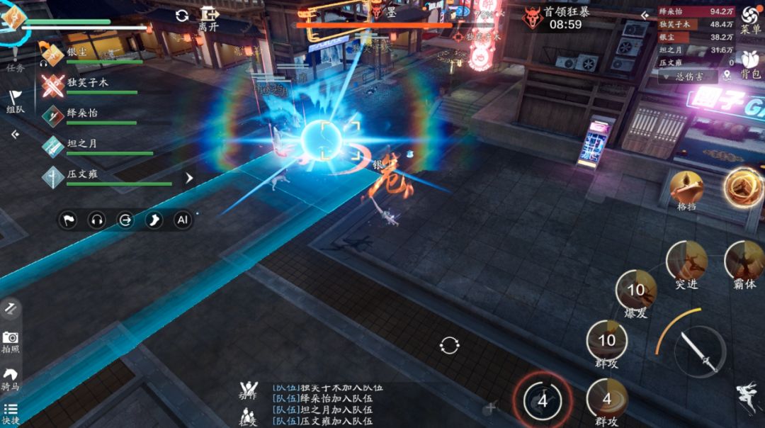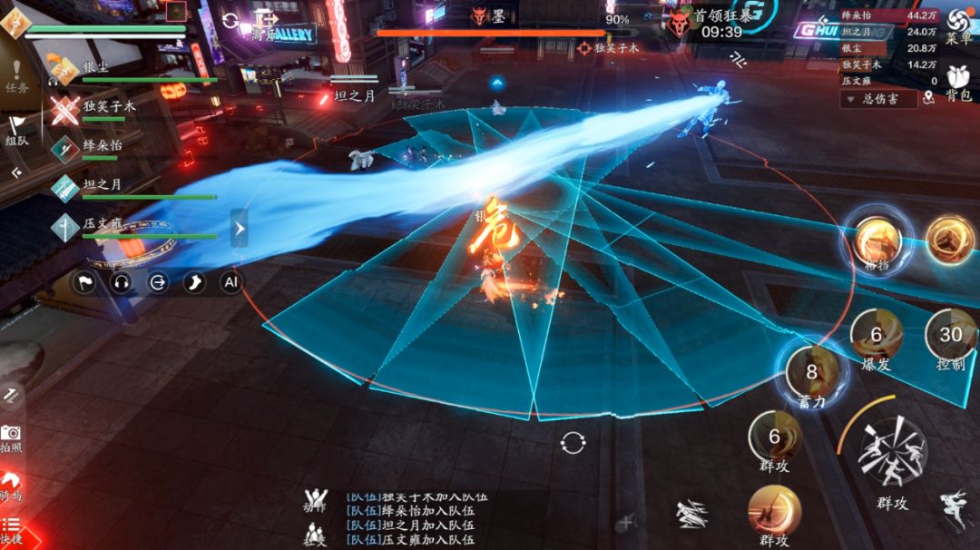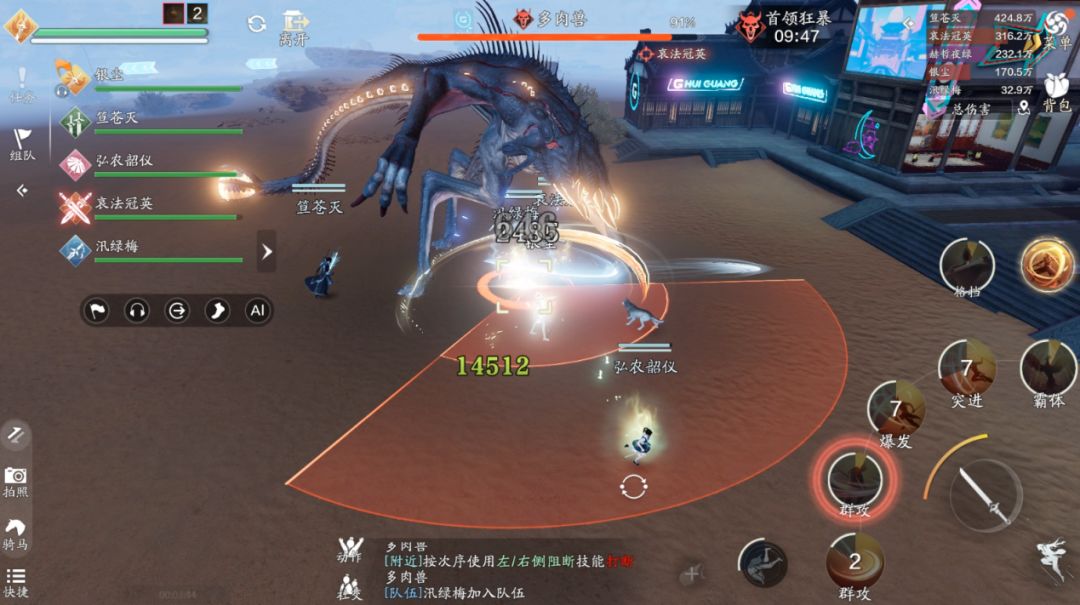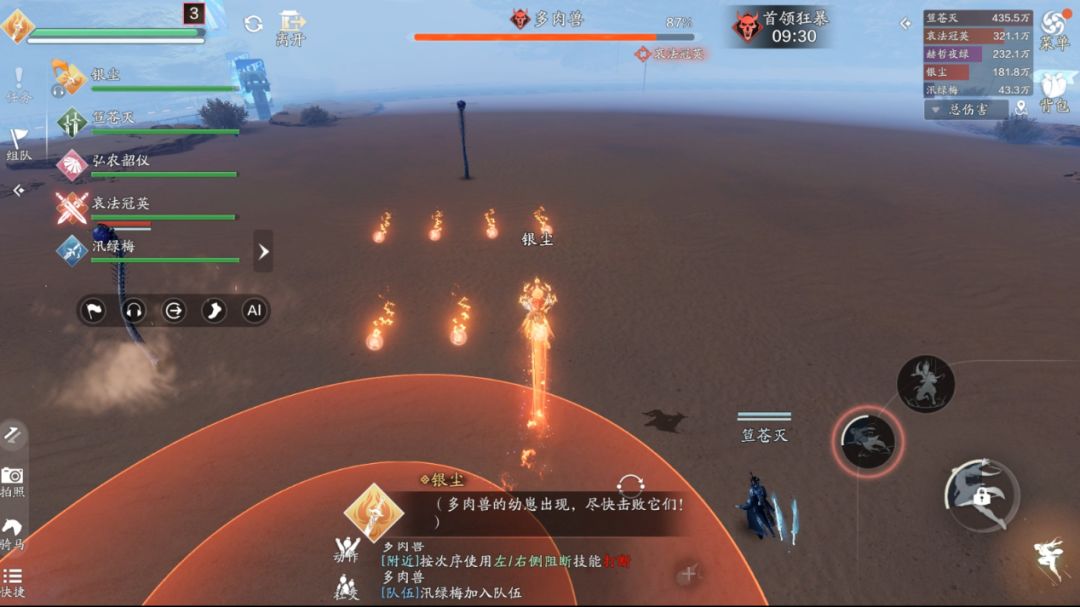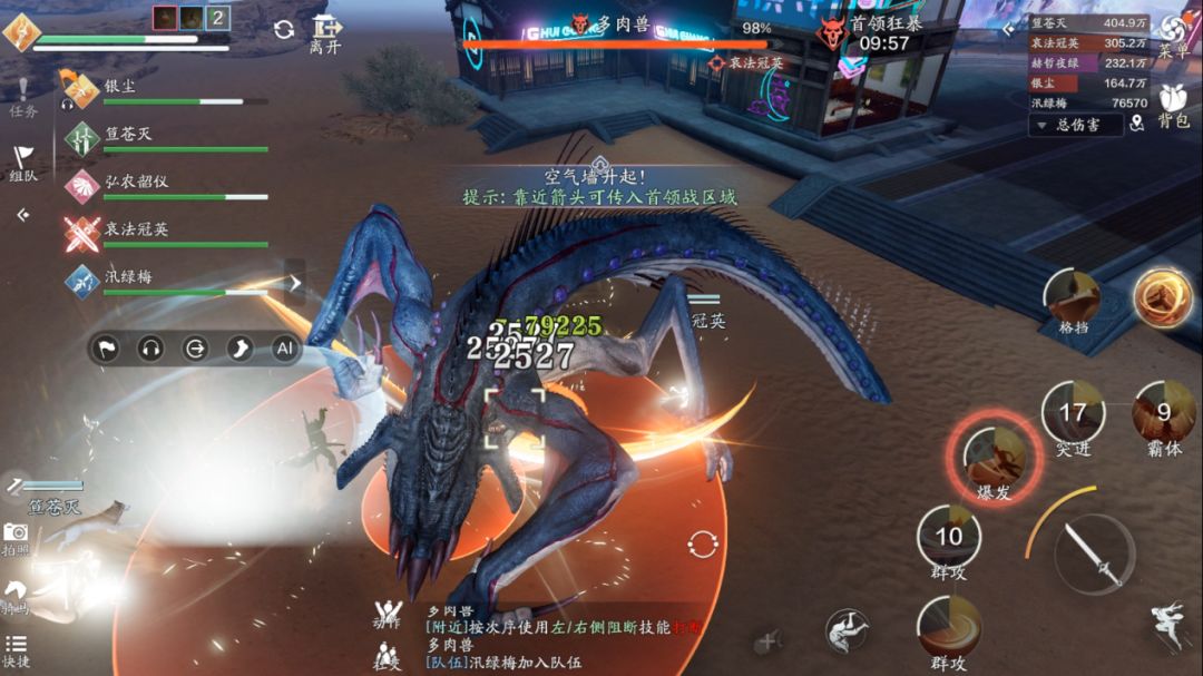 方向其实很简单,我们只需要观察首领的抬的是哪只手即可,在我们的视角中,首领抬的是右手,那么我们需要按左边的技能“左肢阻断”,如果首领抬的是右手,那么我们需要按右边的技能“右肢阻断”。这里一定要注意,输出跟治疗一定要远离技能的红圈,不然会受到巨额的伤害。如果首领在人群中释放范围技能,我们可以采用“同方向阻断”来取消它的技能,如果依旧使用“反方向阻断”就会造成“我痛击我队友”的名场面。