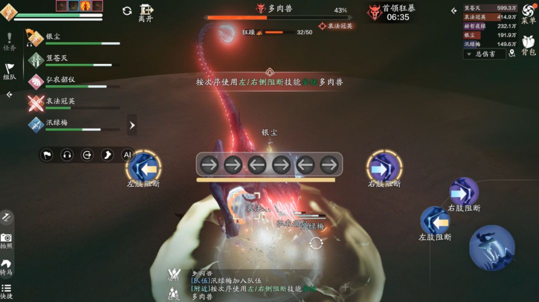 另外首领会触发两次快速反应机制,当首领释放“无能狂怒”时少侠需要按照提示顺序输入“右、右、左、右、左、右”来进行打断。