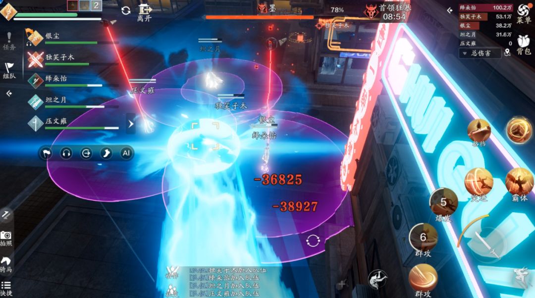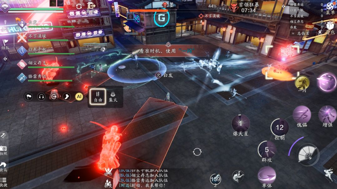 唐先生将所有少侠击退,随后发动致命的圆形和环形攻击。少侠无法移动,这个技能需要提前跑位,让自己可以被击退到白色安全区域,白色安全区域是个环形,建议少侠站在内圈位置的中间,这样方可安全的落在安全区域。