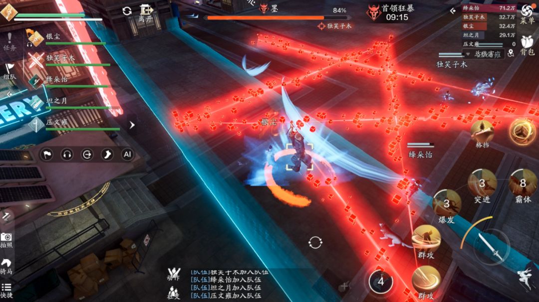 进入该状态后,矩形技能也进行了强化,原先的一条矩形技能会变成6条,武士会以3条为一组进行释放。