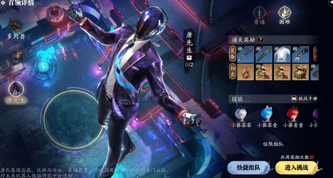 接下来我们看看最难的首领唐先生,唐先生的机制只增加了一个,这关乎到拿盾以及拿剑的少侠,不过难度不算太大,配合好了之后可以顺利通关。