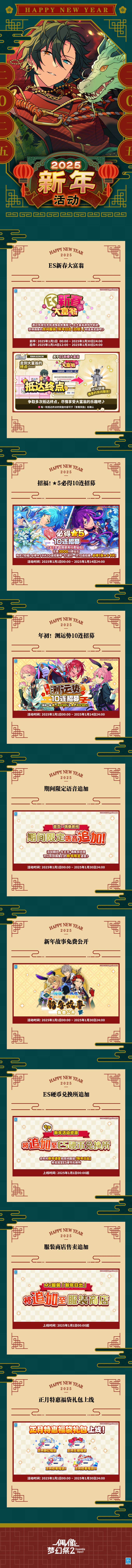 2025年1月1日00:00起,ES硬币兑换所将追加去年的新年语音「新年问候-3」、「特设-新年话题-3」、房间服装「新年日出(共51件)」。