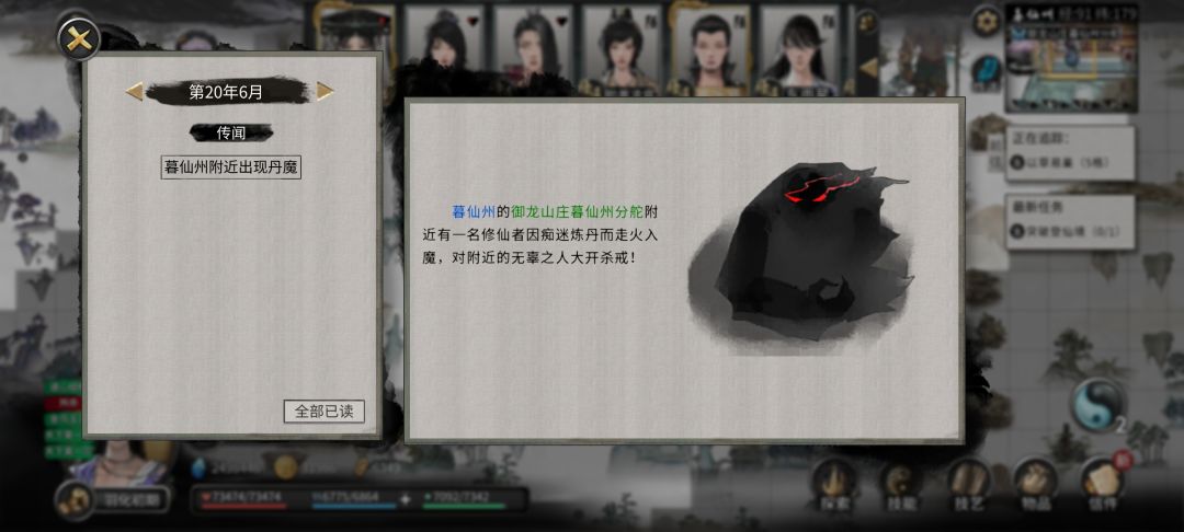 2、过月的时候会刷新一些事件,就是石灵,药灵,还有一些入魔修士,打完就会给对应的资质书,比如药灵给采药的资质书,入魔炼丹师给炼丹资质书,器灵给炼器资质书,刷新频率还不错,有时候甚至会一月一刷