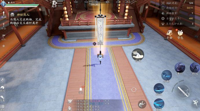 商人关卡可以消耗幻月币购物,购物完成后,需要手动开启商人身后的旗子进入下一关,这里要注意的是,如果少侠先开启了旗子,那么神秘商人将无法再次购买任何物品。