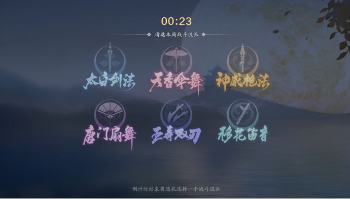 进入战斗前,会有6个不同的门派供少侠选择,分别是太白、天香、神威、唐门、五毒、移花,少侠可以从这6个门派中选取一个进行挑战,另外只有女性角色才可以选择天香。