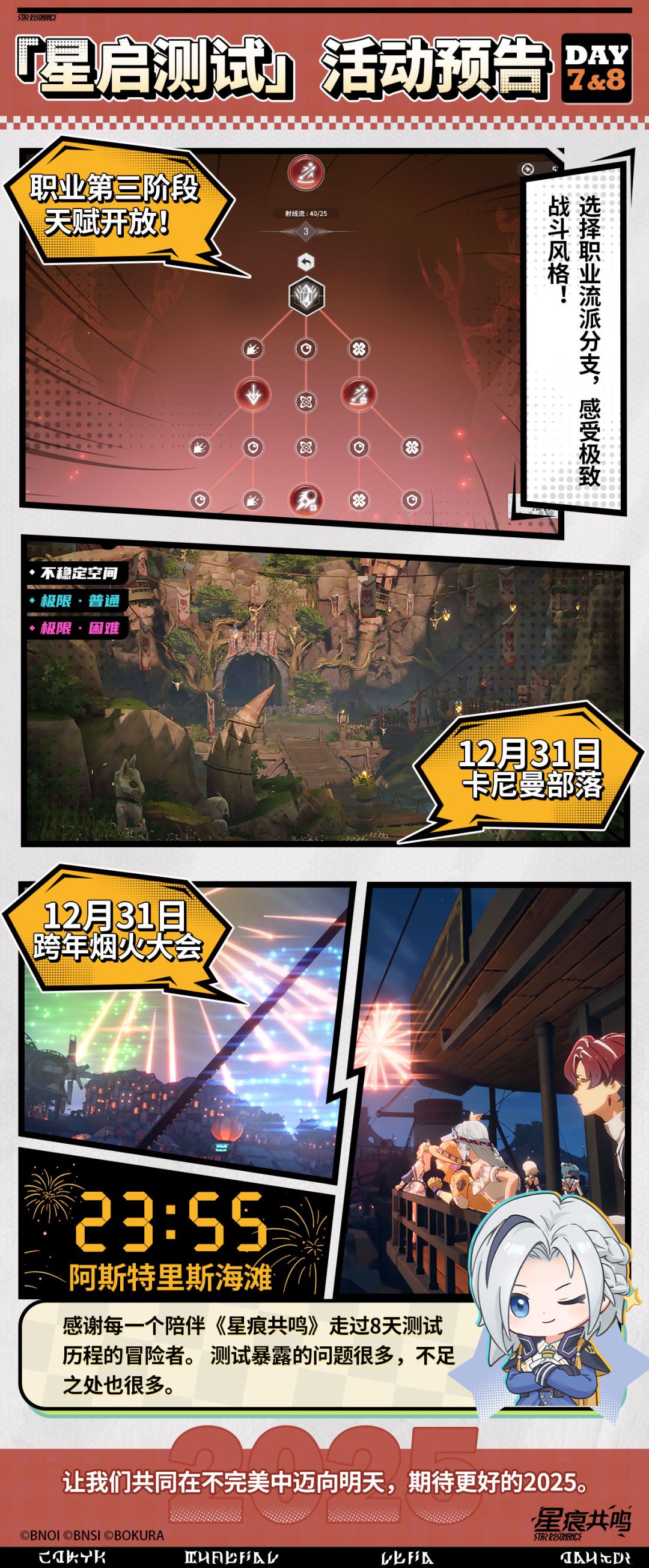 12月31日,卡尼曼部落将开放挑战。当天23:55,阿斯特里斯海滩将举办跨年烟火大会。2024年的最后一晚,和伙伴们携手相伴,共同期待更好的2025!
