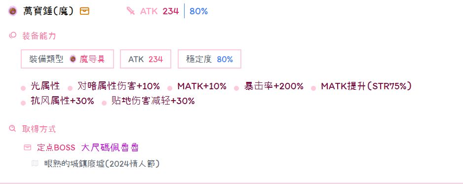 只选取了个人认为有用或者有意思的装备,时间顺序是从下往上。