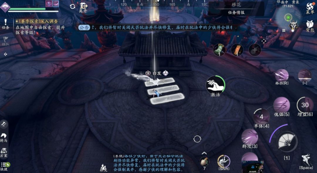 完成第一个月相之后,我们会发现地面上有对应的卦象,点击之后自动传送回移花门派内。