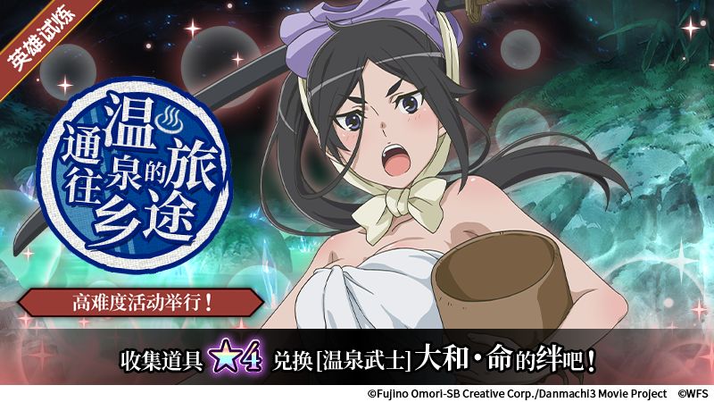 收集「英雄试炼」活动素材,兑换★4【温泉武士】大和·命的绊(羁绊)吧!(免费送的,一定要参加!