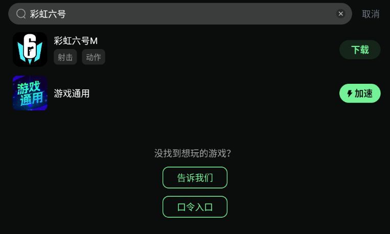 第三步:在奇游内搜索【彩虹六号M】即可下载游戏(如果提示游戏未安装,则说明奇游非官网版本,应用商店下载的奇游无法进行游戏下载)