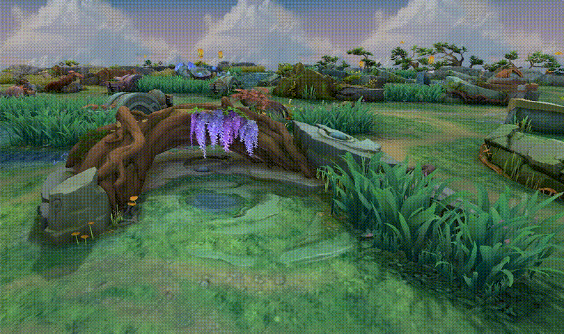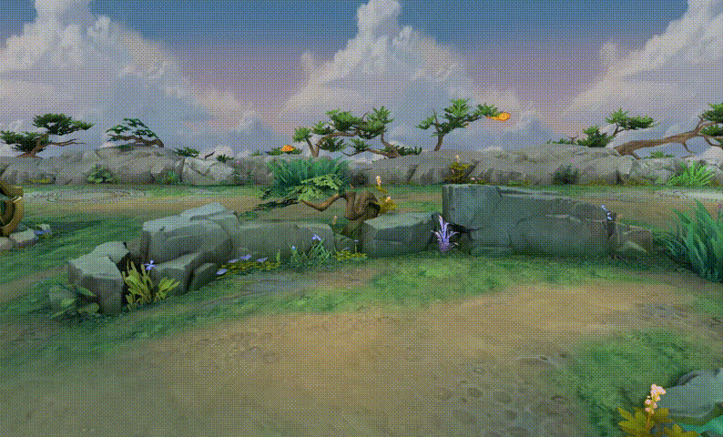 我们为曙光裂谷地图定下了“先民遗迹”的主基调,以此发散构建了一个位于曙光大陆女神峰上石器时代风格的遗迹。