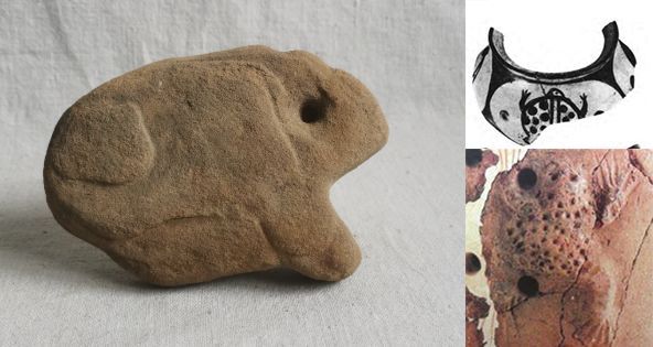 新石器时期,长江、黄河流域许多文化中产生了蟾蜍的信仰,大地湾遗址、姜寨遗址、柳湾遗址中均出土了雕刻或绘有蟾蜍的石器、陶器。蟾蜍常于雨水前后出没,捕食害虫的习性迎合了农耕文明的需求,因此相应的信仰便应运而生了。我们在地图中添加一个蟾蜍的雕像,希望能够体现出先民对生产的期望。