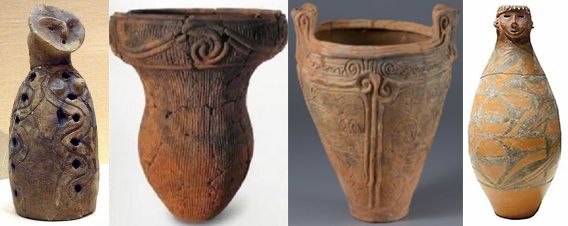 随着技术的发展,河姆渡文化和仰韶文化渐渐掌握了陶器的制作,人们已经学会了制作陶制的釜、罐、杯甚至工艺品等等,并掌握了雕纹、上色等技术,极大地丰富了当时人们的生活。我们从这些精美的出土文物中提取了一定的文化风格并进行了重新设计,以此增添地图的生活气息。