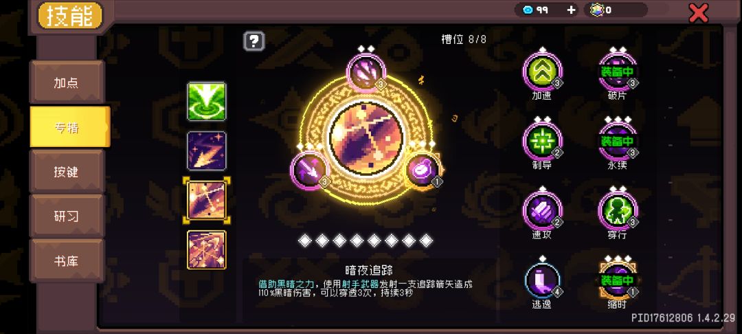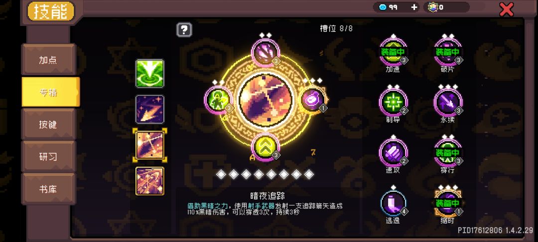羁绊可以看我图片里面的,图片里面有一个致命节奏,这个不是刚需,可以把它换成厄运,引力,快捷施法,这几个羁绊都要比这个致命节奏要好一点,宠物的话其实看个人,缺全体伤害的话就带那个加全体伤害的宠物,不缺的话就在我图片里面展示的这个宠物,然后技能专精这里,我是这样带的直接看图就完事了,然后最后一个黑夜追踪是日常刷图可以这样带,有什么不懂的,直接在评论里面问就行了,我看到的话会回复的