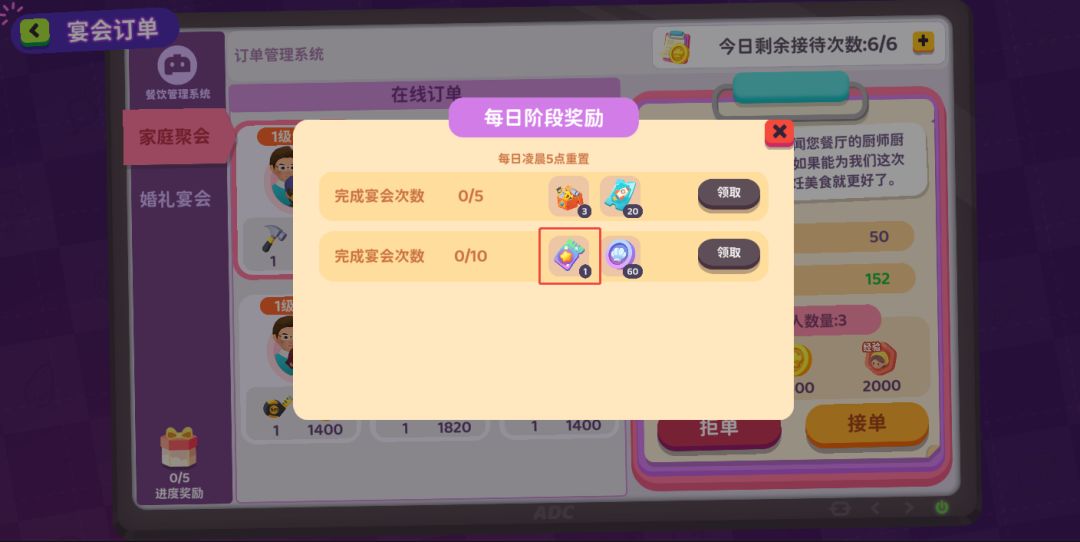 1.宴会订单的每阶段奖励里,店长大大每天都可以获取1张直聘券哦,主要的获取方式有以下4种哦~