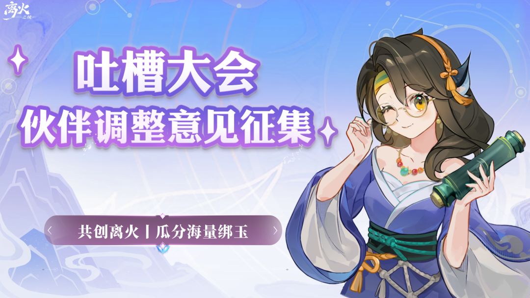 不管是吐槽还是建议,我们在乎每一位寻火者的心声与感受,为了给寻火者带来更好的游戏体验,离火将对游戏内的伙伴战斗平衡问题进行优化改进,欢迎大家对伙伴战斗平衡问题畅所欲言,或许你的建议下次就出现在离火世界里了呢~