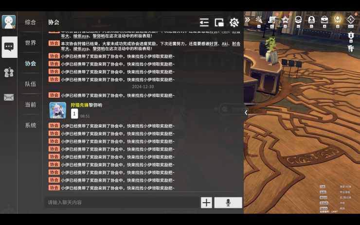 在协会频道中积极和其他成员沟通交流,可以获得更多游戏资讯!协会频道中还会提醒每周参与协会活动,提示领取奖励。