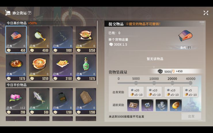 上交一些物品,装载量达到5000就可以获得一定的协会资金和协会贡献值材料