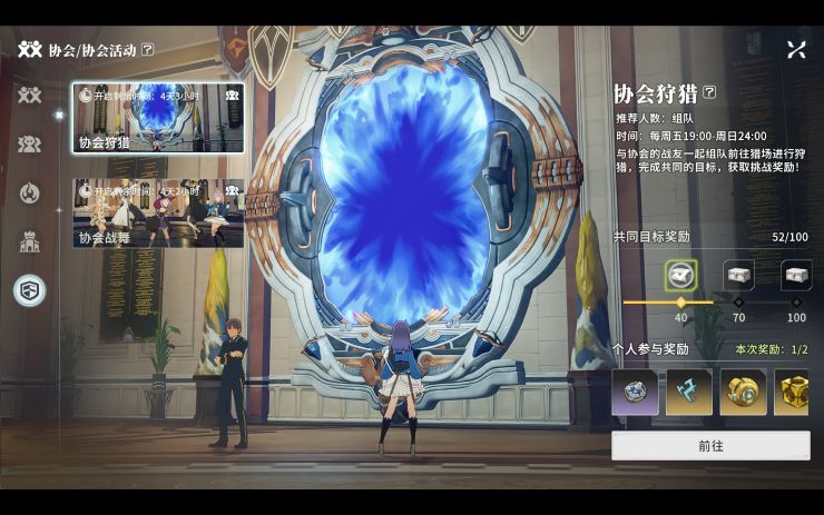 每周五19:00~周日24:00参加协会狩猎,这个活动就需要邀请协会成员完成副本考验,胜利之后即可获得奖励以及狩猎积分。协会内狩猎积分达到一定数量时还可以获得额外奖励