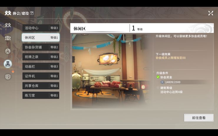 协会初始人数限制为80人,当协会休闲区达到6级时,成员上限达到最大值120人。