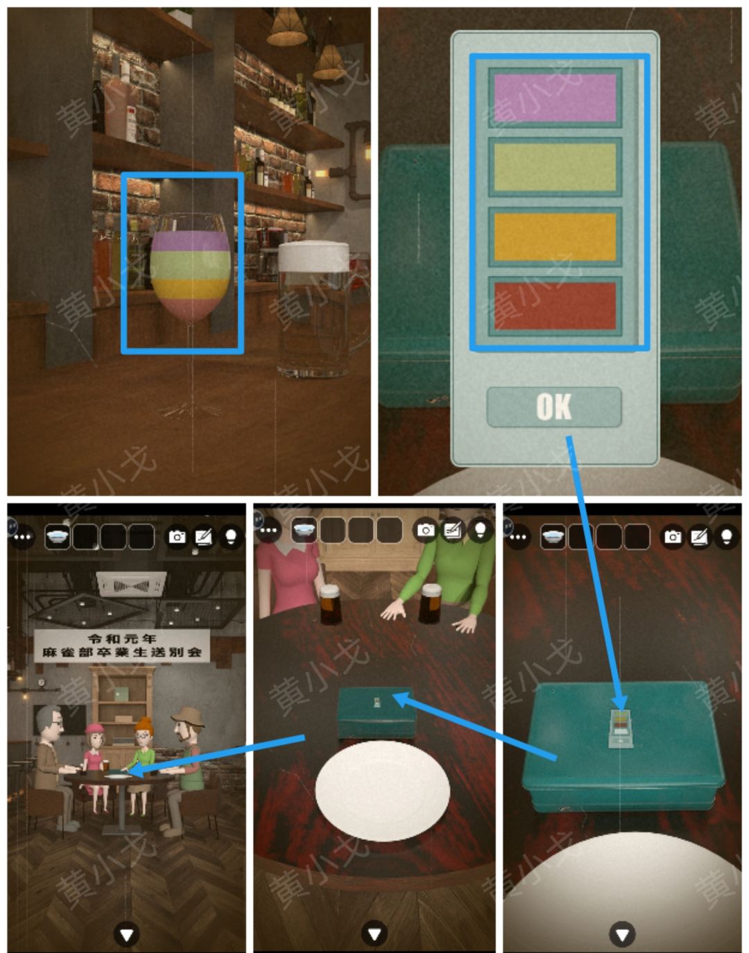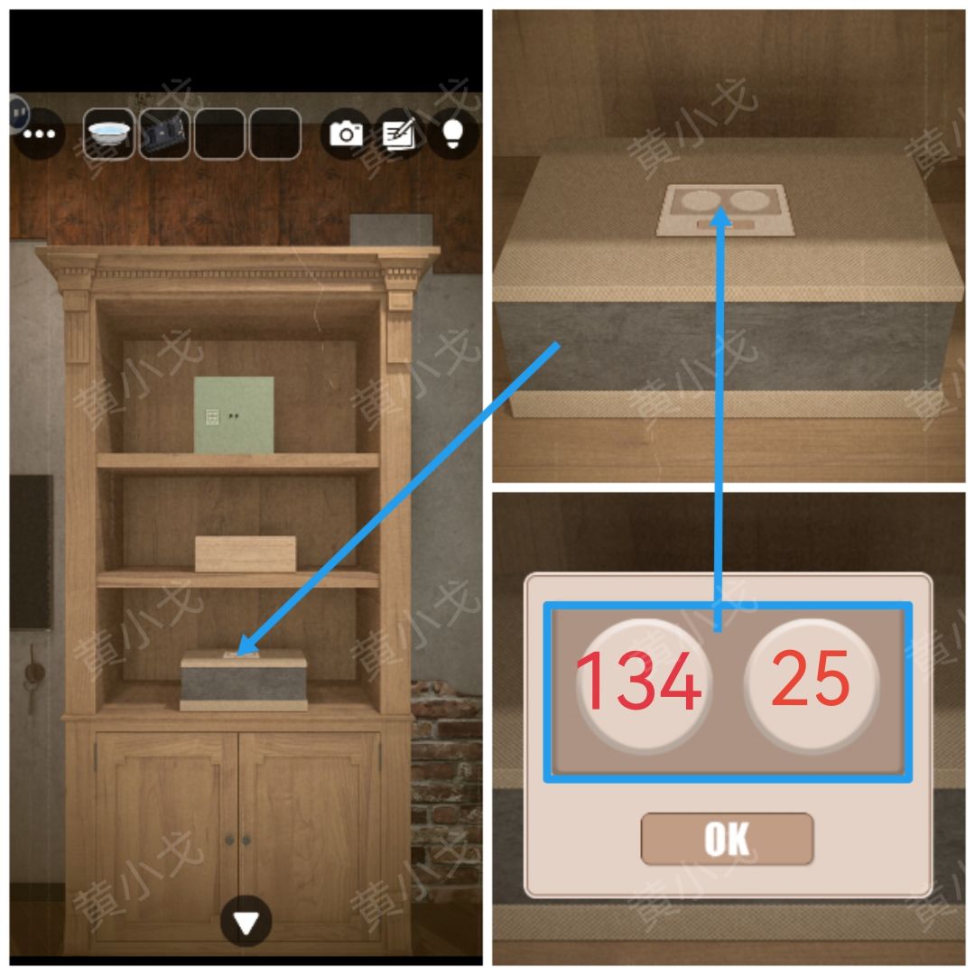 2.点击桌子上的盒子,根据吧台上的酒,调整密码锁