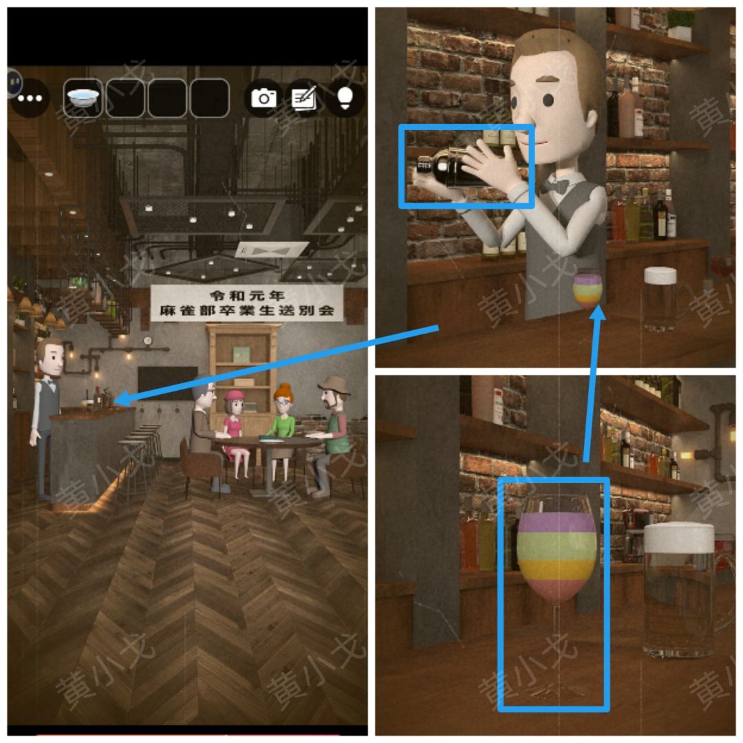 1.点击吧台,查看高脚杯里的酒,获得线索