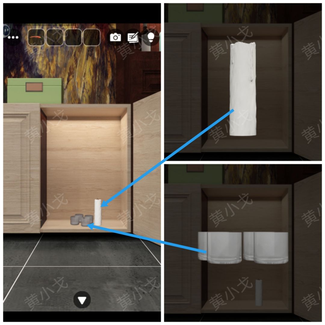 19.打开柜子,获得【杯子】和【蜡烛】