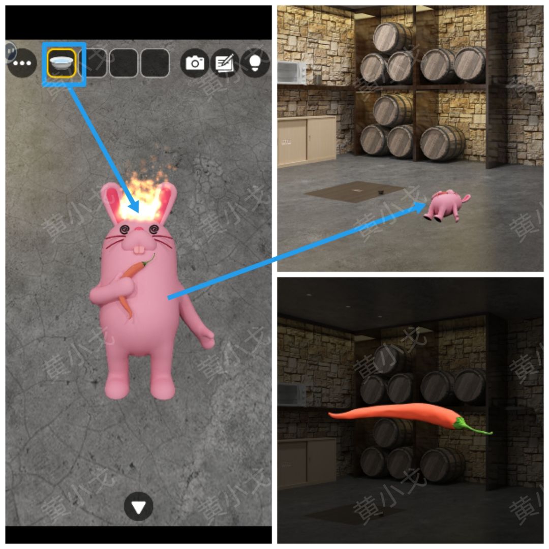 24.点击地上的兔子,拿【一盆水】泼醒它,获得【辣椒】