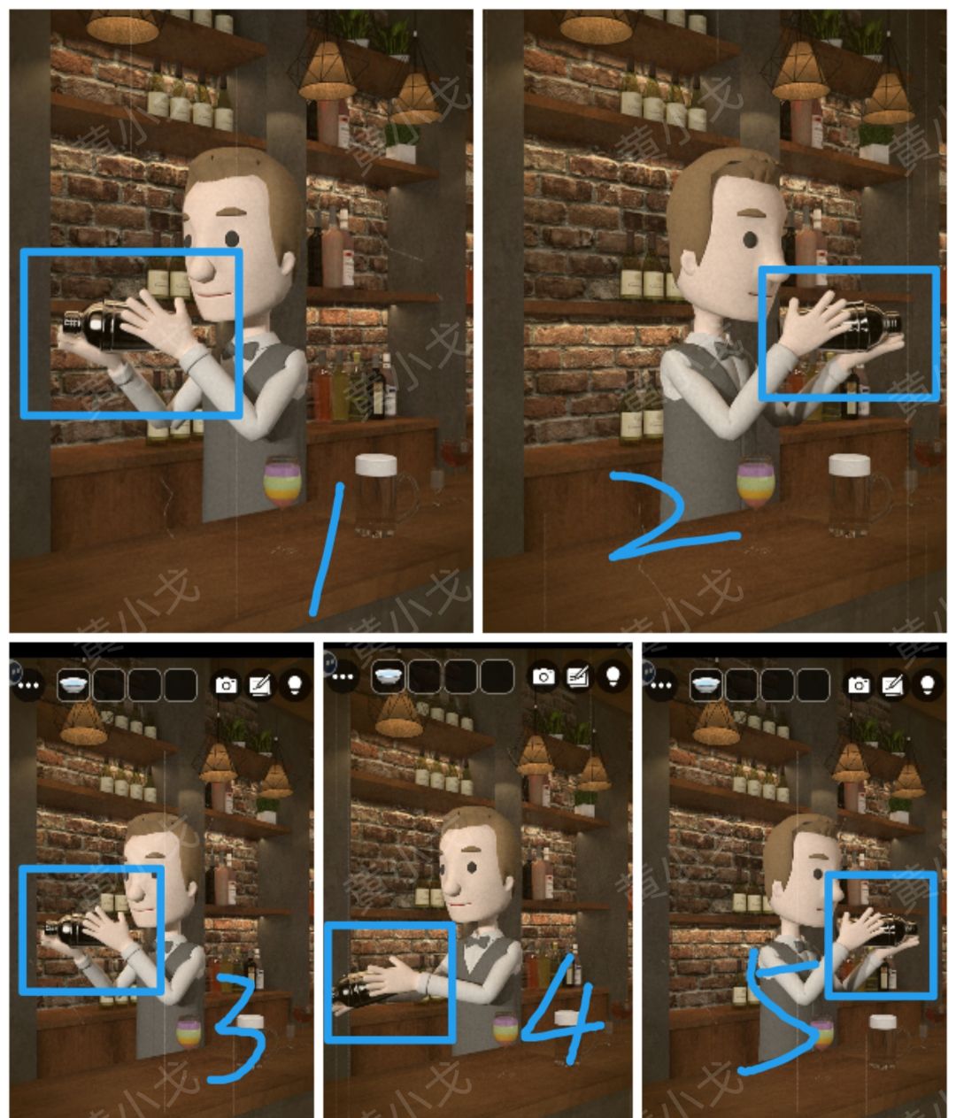 🔶观察酒保摇酒的顺序:左右左左右