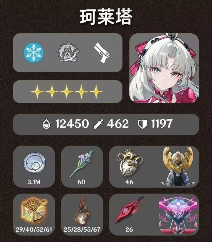 珂莱塔角色养成所需材料