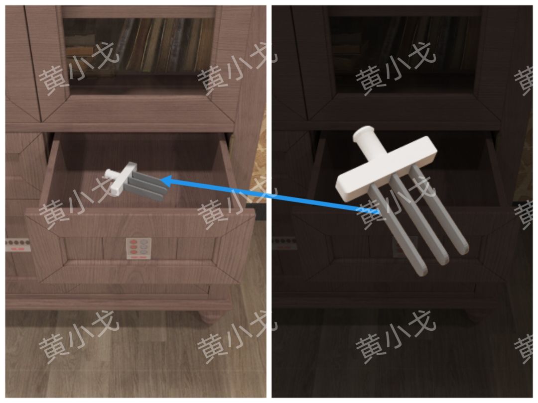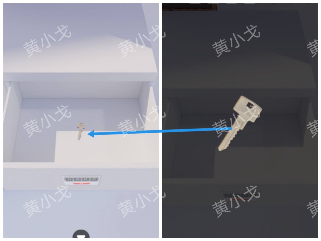 9.点击柜子左侧柜门上的密码锁,根据[小屋]木头线索,调整密码锁