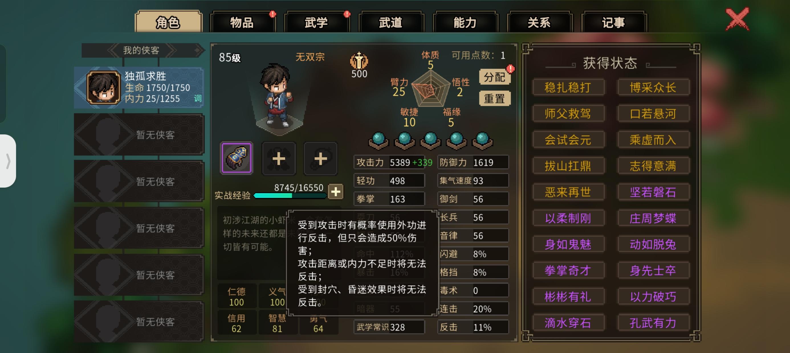 2、对空地把内力耗完(有内力才能放技能,没内力反击就只是普攻,避免aoe清图)