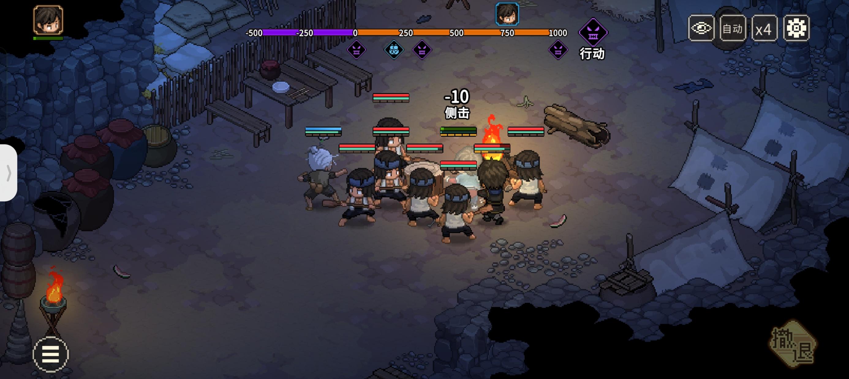 3、背对海蛟帮帮主(背击承伤高),因为他有流血效果,所以尽量保证他不死