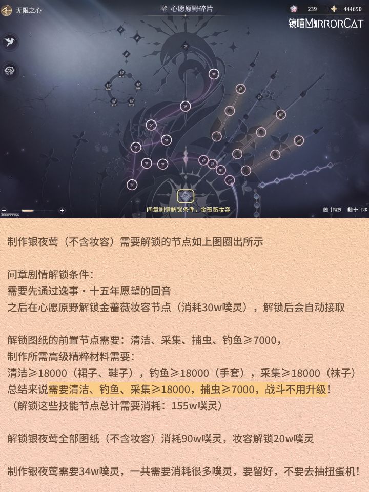 ⭐制作银夜莺需要34w噗灵,1200纯真丝线,一共需要消耗很多噗灵(解锁前置节点+制作共计309w),要留好,不要去抽扭蛋机!