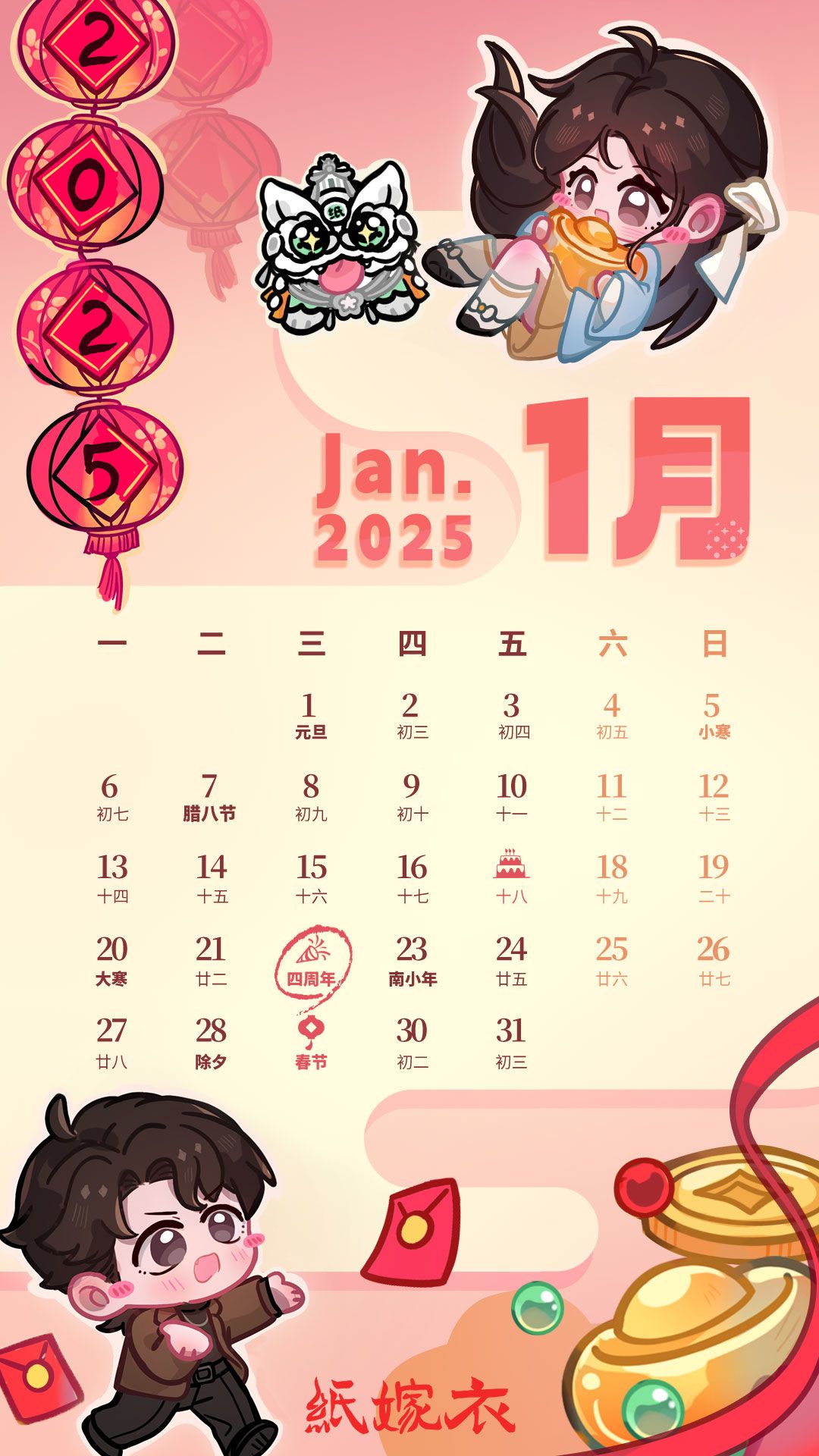 寒来暑往,一年的光阴转瞬即逝。今天已经是2024年最后一天啦~嘿嘿又是阿纸带来新的一月日历,内含超超超多彩蛋哦!