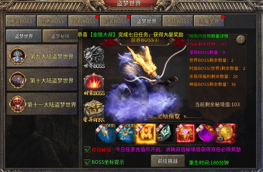 挑战BOSS→盗梦世界