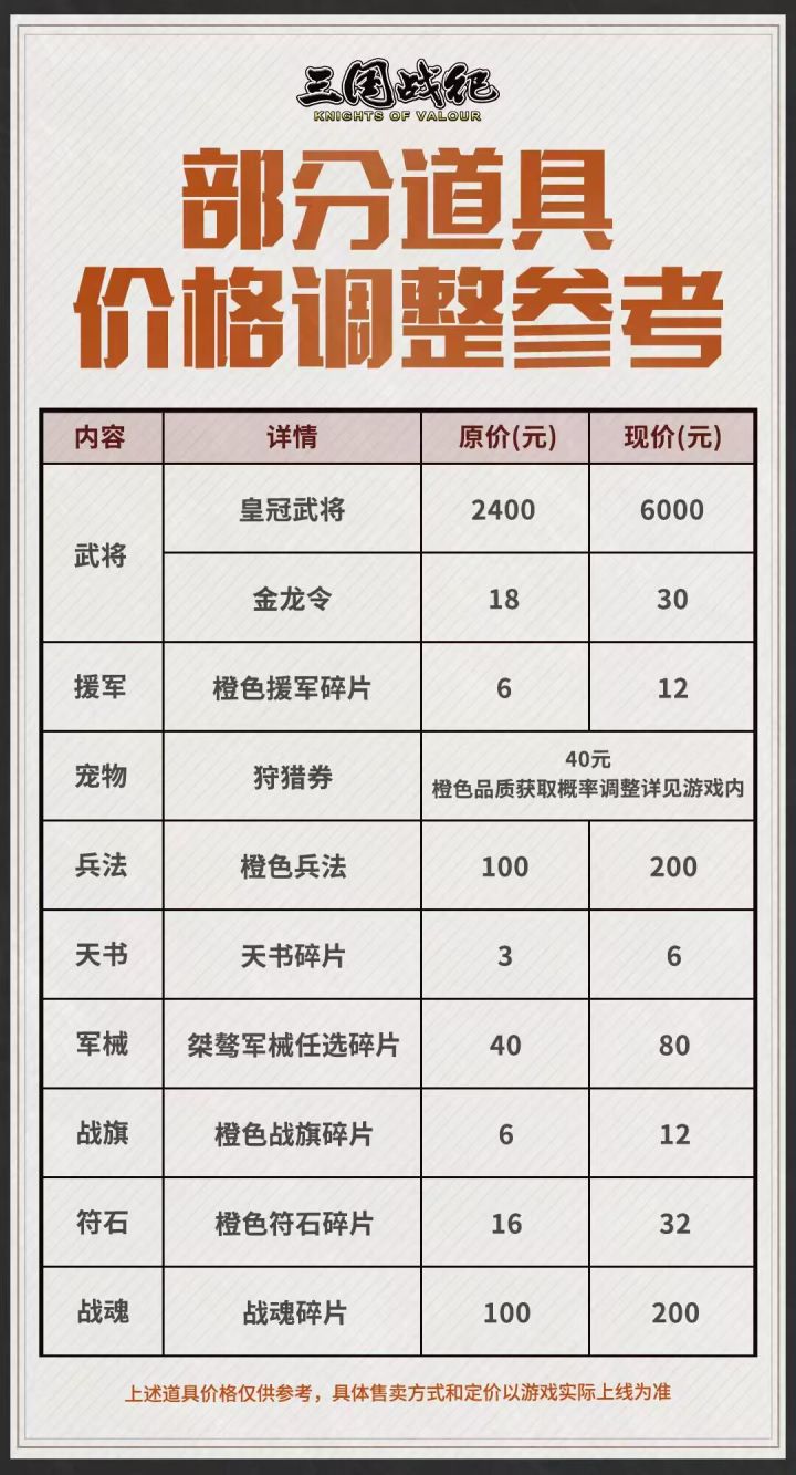 #界限突破##三国闲话###战纪猜猜猜##一石激起千层浪,更新在即!大家都知道要涨价了,但是这张涨价图让我心凉了大半截,我数了一下,一共九项,这九项基本都是增长战力的衔接点,尤其是武将,预计新武将3.6万元宝才可以招致麾下,想要升星估计还的1.5万!月卡补的那点东西,简直是捧水车薪!一下调整了两个主力排位武将,张星彩核心机制还在,还可以一战,大猪算是废了,可以传承给新武将了(假如你能接受这个价格),有时候手游就和现行生活一样,手上是有点余粮,但前景不明的情况下,根本不敢动,我的确中意邓艾,但一想到不到一个月时间年将该来了,让我难以抉择!大家咋看待这个问题呢?