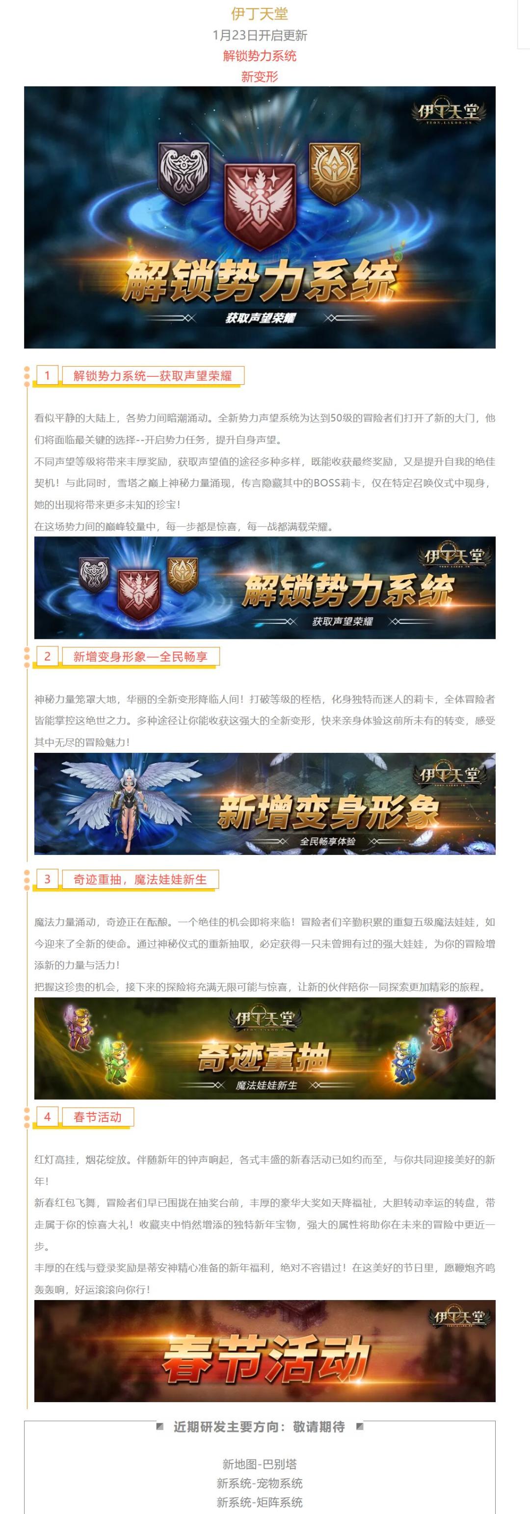 [梦想启航][火羽凤凰]1月更新预告:解锁势力系统—获取声望荣耀