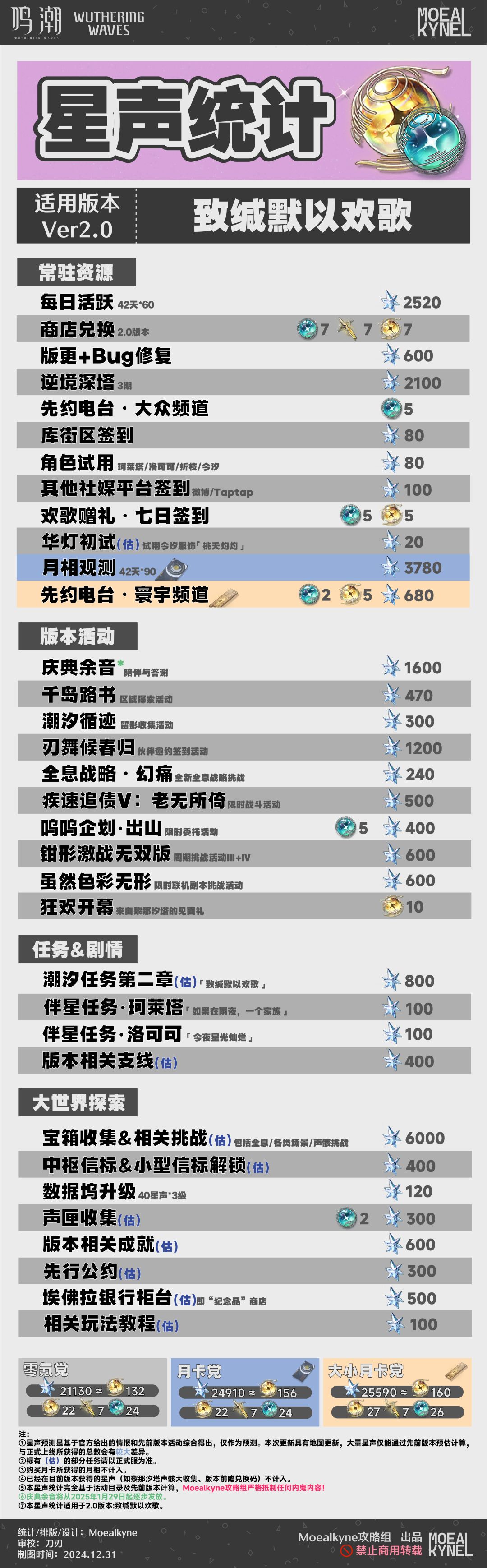 各位漂泊者早上中午晚上好呀,这里是Moealkyne,本次给大家带来的是2.0版本【致缄默以欢歌】前瞻星声统计表!