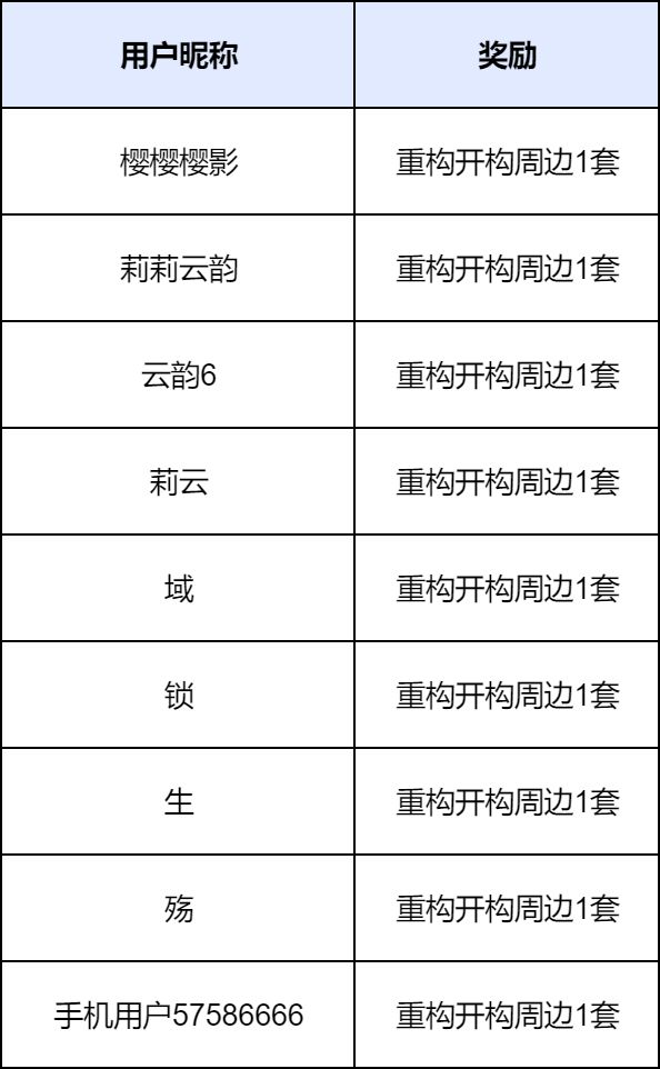 哈米莉亚将为点赞量最高的10位向导送出【重构开构周边1套】