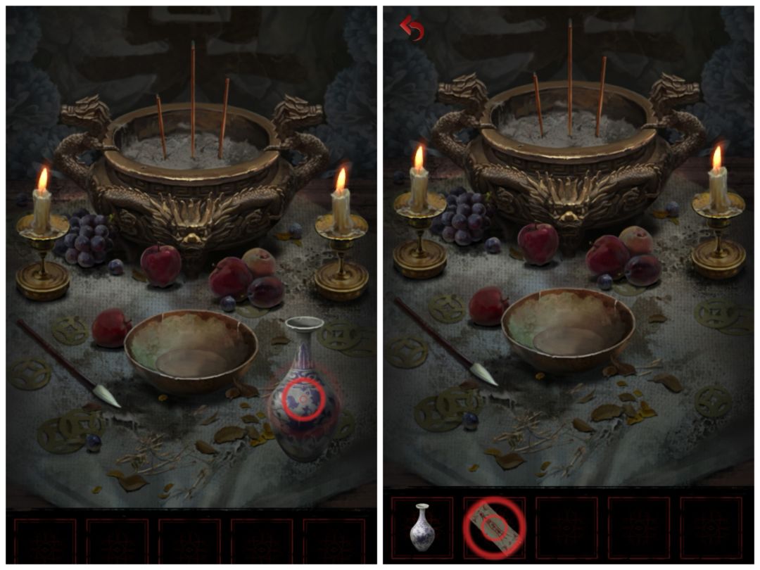 回到墓碑,将苹果放入供盘中,得到燃烧的蜡烛。