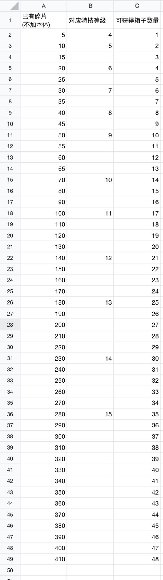 举个栗子:假如目前有110碎片,其中100碎片能转为11级特技,距离12级还差30碎片,如果没有意愿到12级的话就没有必要抽旧的来薅多点箱子,毕竟有歪的风险。