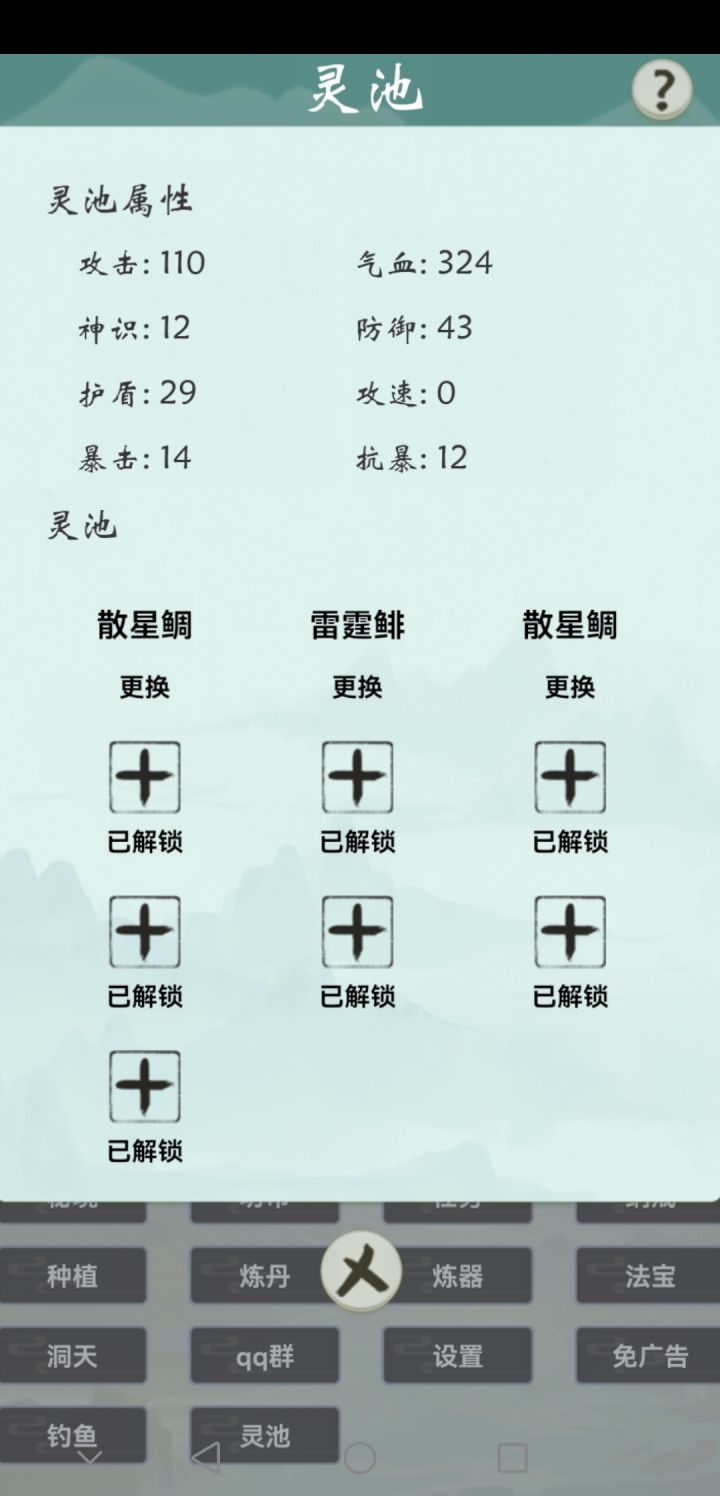 刚钓三条带属性的灵鱼,当然首先得解锁更多的灵气值(图鉴),才可能添加。