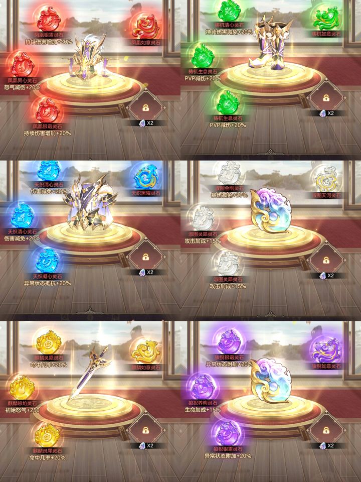 5、灵石方面,可以按照我上面发表的图选择性抽,这东西需要一点点运气。建议先把灵石抽一遍部位抽出技能,再看自身情况补充对应的灵石,图中灵石并不绝对。
