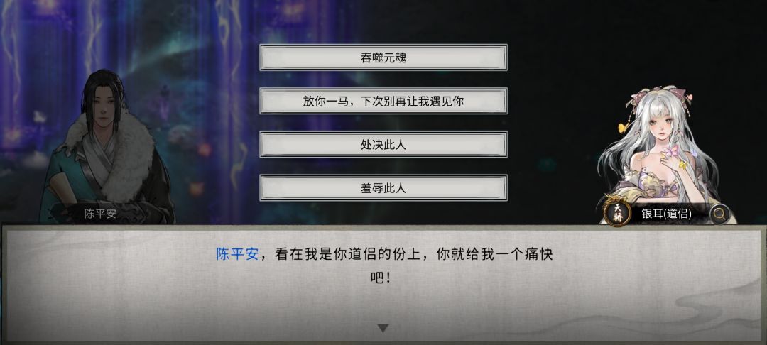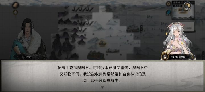 而银耳的剧情也有难度。首先,其触发地点为要在任务栏接一个“幽谷的呼唤”(差不多这个名字),然后按照任务提示前往第二张地图的陨幽谷副本,里面是田字格九个区块,把小怪全清了,每个区块都走一遍就可以将银耳救出来,最后她会在谷附近安家,你就在这里触发剧情就行了。这一部分剧情的结点是她的重塑身体的任务,会出现两个不同的选项,分别导致重塑成功和失败。我的是重塑身体失败了,然后在她家附近等半年,就会完成一个“伊人已去,但你冥冥之中总觉得这件事情没有那么简单”的任务,她会再次出现在家附近,剩下的接着走剧情就行。