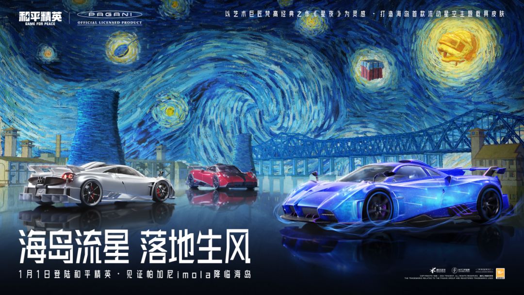 1月1日,《和平精英》与帕加尼的跨界联动将正式上线。这是一场属于速度与激情、奢华与艺术的盛宴。让我们一起驾驶着帕加尼的顶级超跑,在海岛留下属于自己的进圈印记!