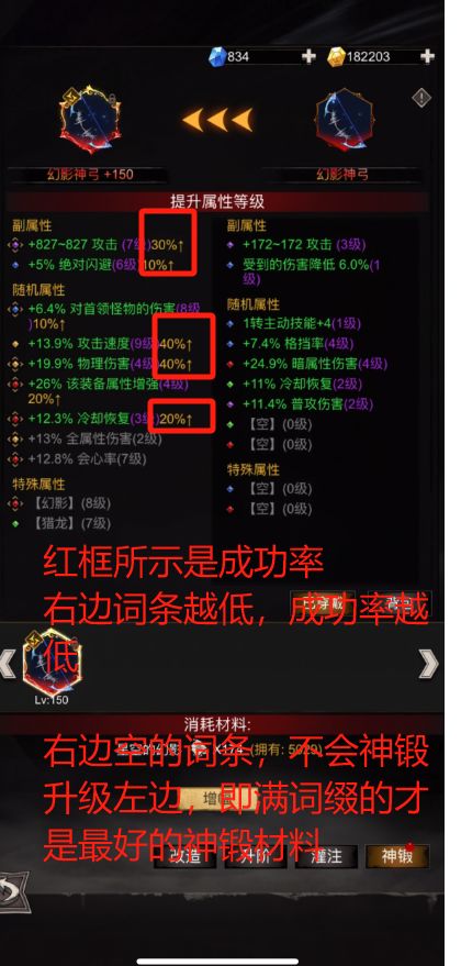 词条等级越高的胚子,越容易升锻成功。词条等级为1的胚子,只有6或更低%的成功率,基本不成功