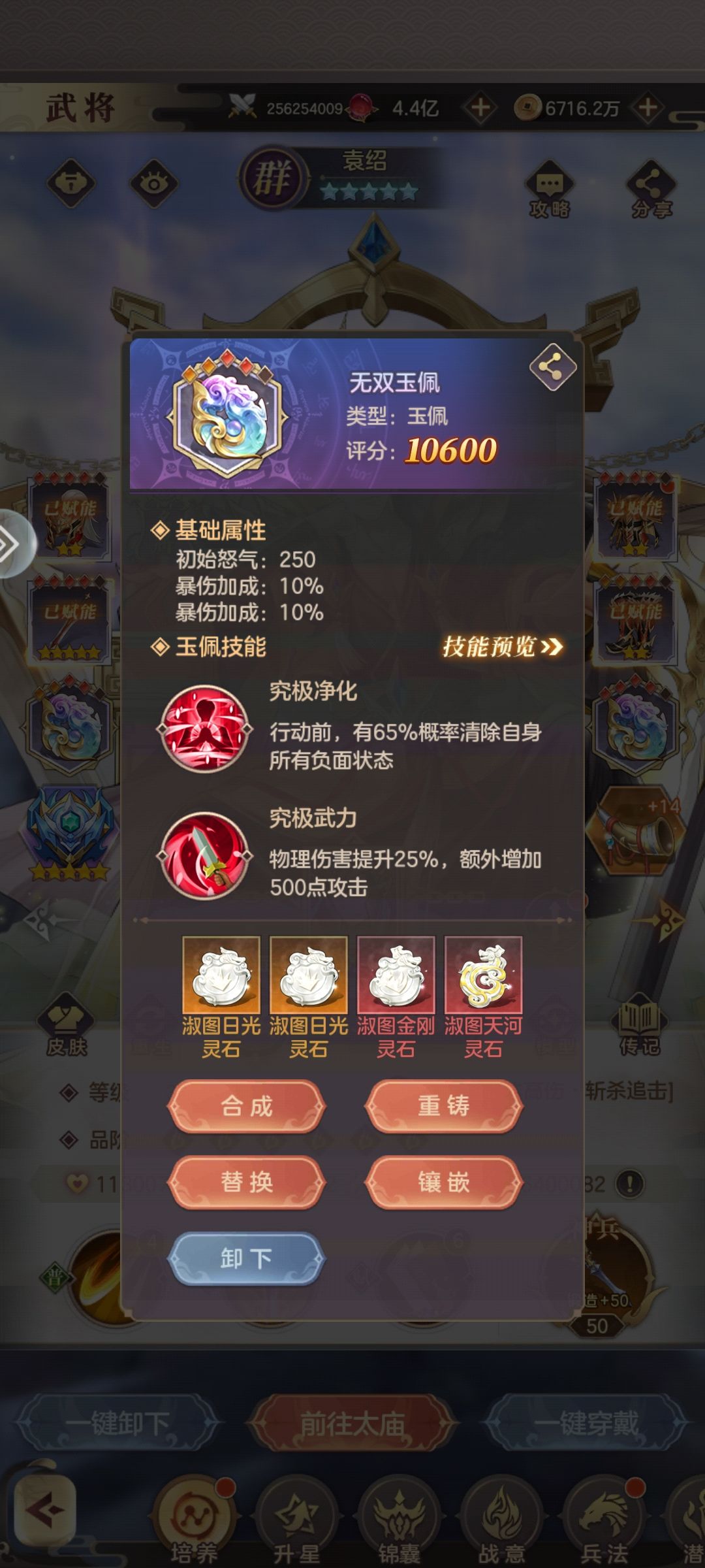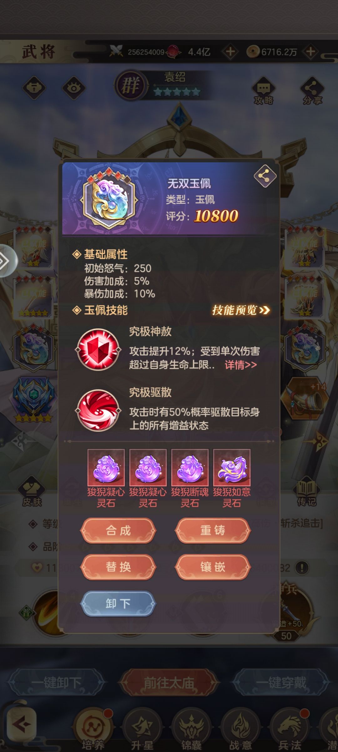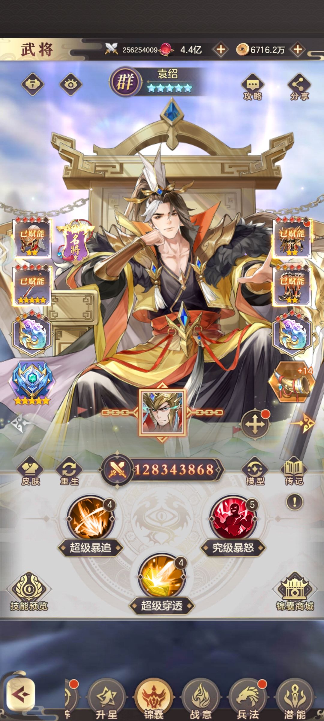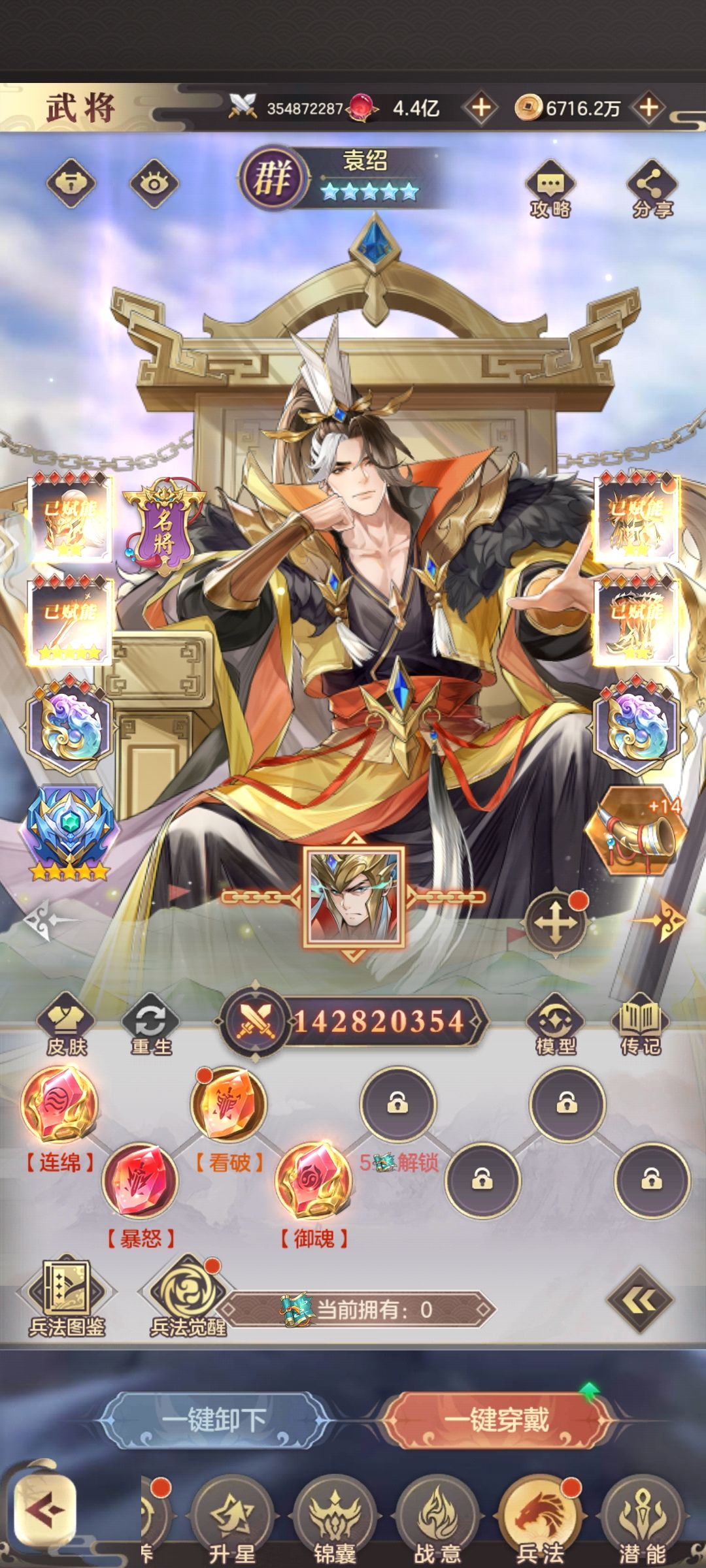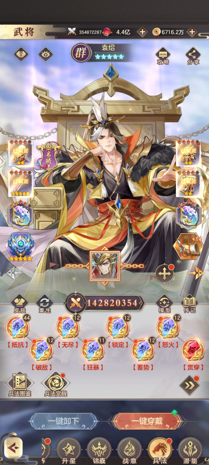 中后期二人转基本成型,需要做的就是把袁绍的硬件与细节准备好,例如天命装备、天命赋能、兵法等等。