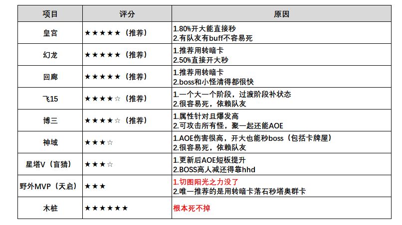 正式服实测以后,推荐顺序参考下表。星塔待正式服降低人免后再更新推荐。