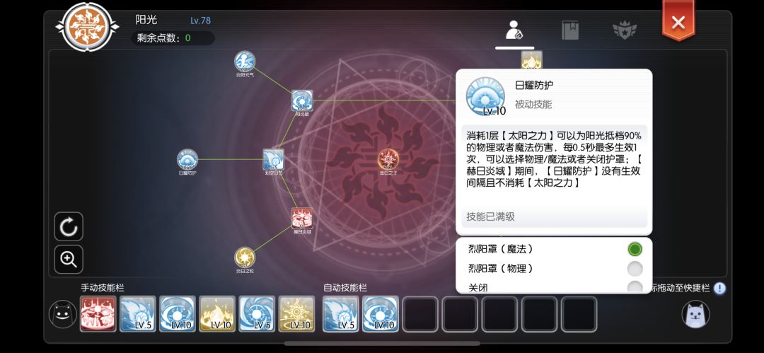 (1)【日耀恩惠】可放第二技能栏,因为buff时长10分钟,如遇到频繁切换场景可直接选择”自动更换”即可
